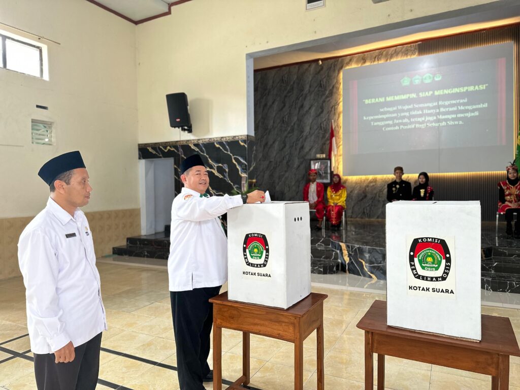 Ketua panitia pemilihan, Roikhatus Syifa dari kelas XII MIPA 3 juga pengurus OSIS periode 2024-2025, menyampaikan sambutan hangat “Semoga kandidat yang terpilih nanti dapat mengemban amanah dengan baik dan membawa perubahan yang lebih baik untuk Madrasah kita tercinta,” ujarnya.