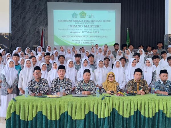 Lasem — Dalam upaya membentuk generasi muda yang tangguh, berkarakter, dan berakhlak mulia, MAN 2 Rembang menyelenggarakan kegiatan Bimbingan Remaja Usia Sekolah (BRUS) dalam program GRAND MASTER (Gerakan Remaja Handal,..