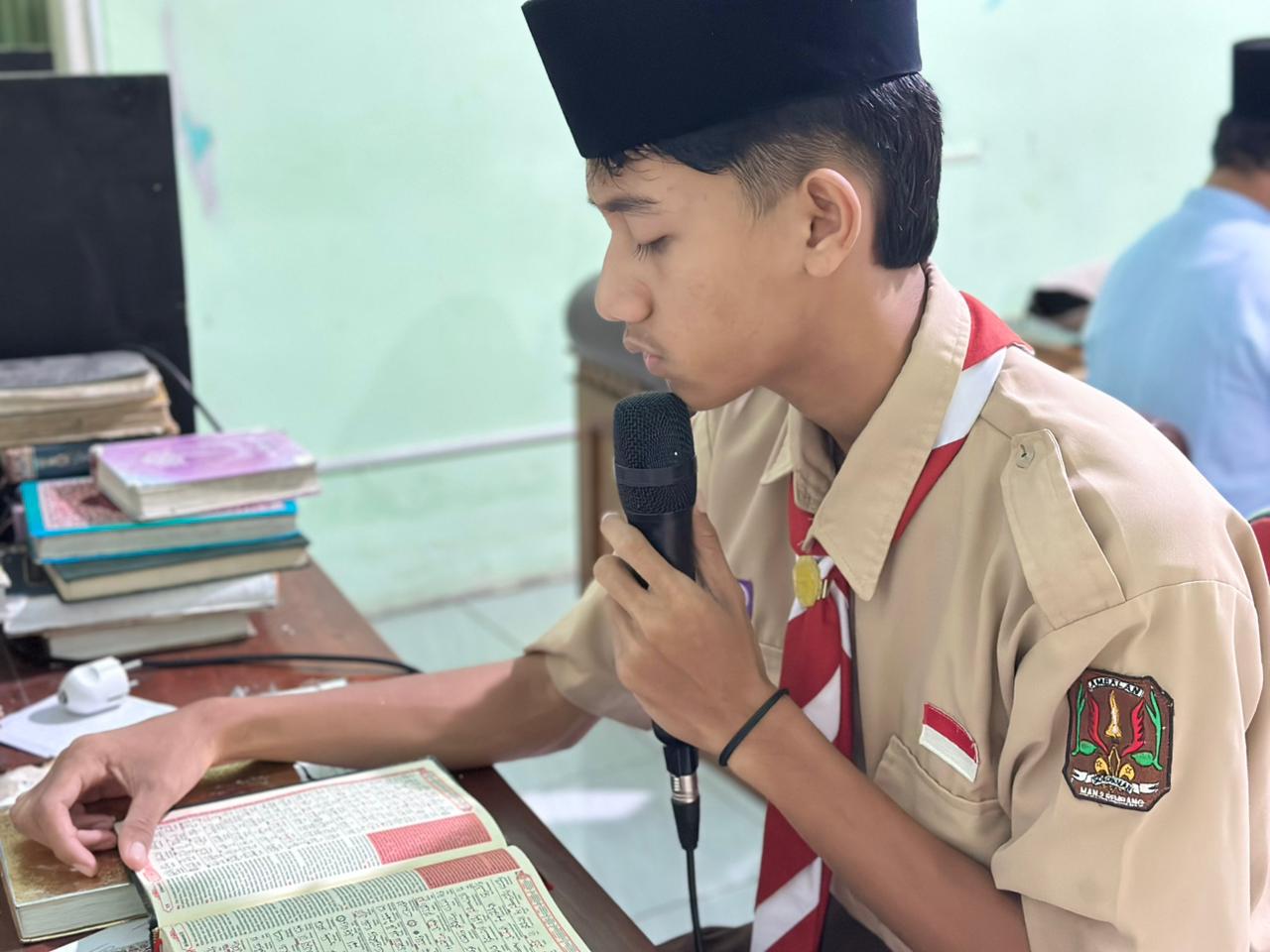MAN 2 Rembang kembali menggelar kegiatan Sabtu Taqwa minggu ke-4 dengan tilawah harian istiqomah tema “One Day One Juz”. Kegiatan ini diikuti oleh seluruh Bapak dan Ibu Guru di ruangan dan kelas masing-masing, sementara salah satu murid memimpin pembacaan Al-Qur’an melalui pengeras suara di ruang utama dengan didampingi oleh Bapak Kepala Madrasah dan wakil kepala madrasah bidang humas.