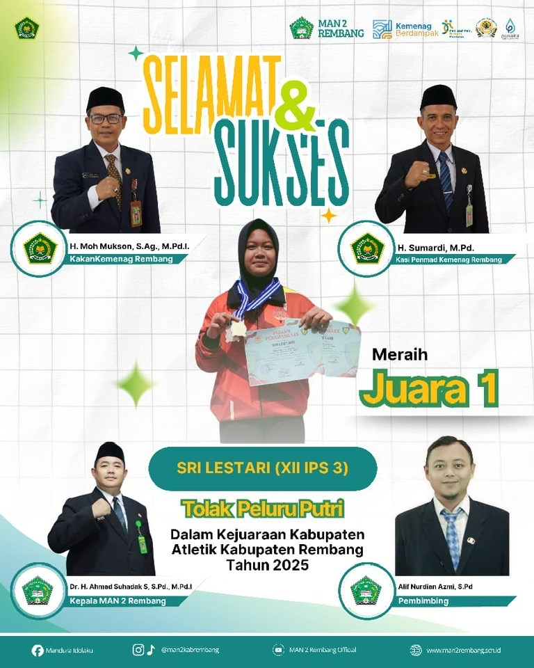 Selamat datang di Madrasah Aliyah Negeri 2 Rembang – Madrasah Hebat Bermartabat, Cerdas, Religius, dan Berprestasi