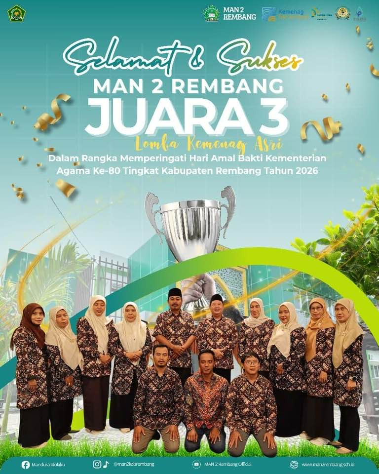 Selamat datang di Madrasah Aliyah Negeri 2 Rembang – Madrasah Hebat Bermartabat, Cerdas, Religius, dan Berprestasi